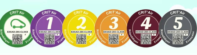 Le plan Crit Air compte au total six catégories de véhicules, donc six couleurs de pastille allant du gris au vert. La vignette est apposée sur le pare-brise du véhicule conformément aux normes d’affichage dictées par l’arrêté du 21 juin 2016.